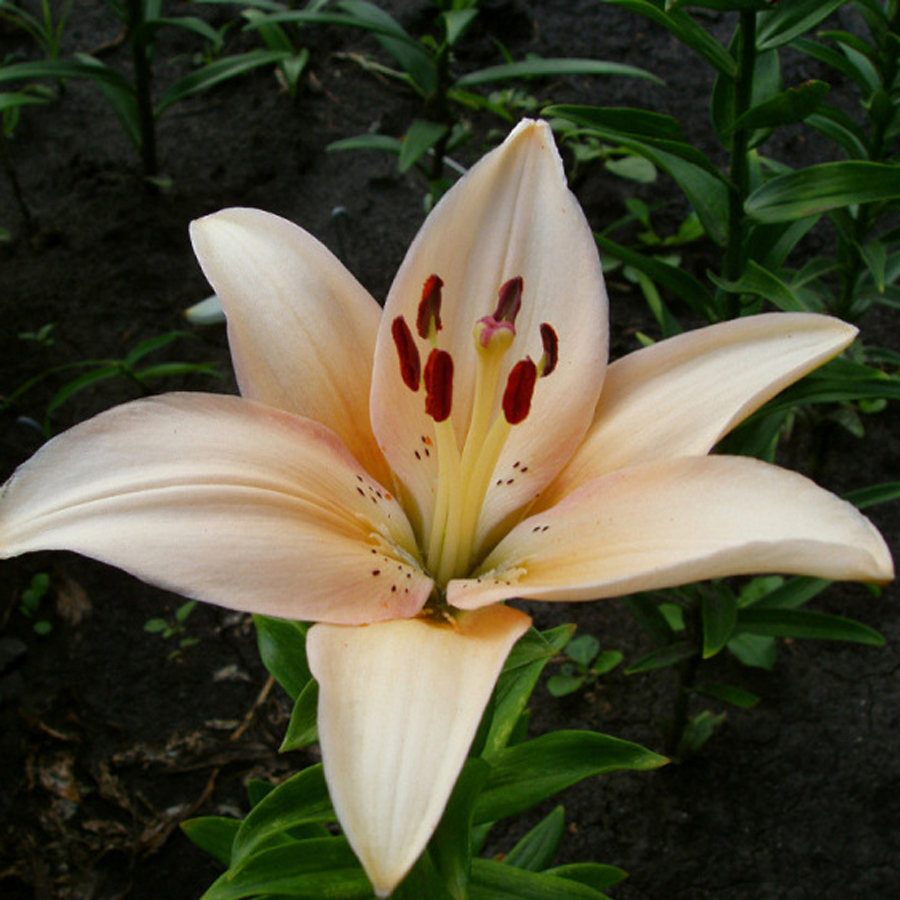 Лилия азиатская Каннес (Lilium asiatic Cannes) хорошо подойдут для выращивания в многоярусных дизайнерских композициях. Высота растения до 110 см, цветки кремовые с редкими темными вкраплениями и крупными коричневыми тычинками диаметром 16 см. Зацветают в середине июня, июле. Хорошо растут в проветриваемых солнечных местах, в полутени, на рыхлой, кислой песчано-глинистой почве. На зиму можно оставлять без укрытия, но следует мульчировать торфом или сухими листьями. Лилия азиатская Каннес используются для озеленения, придания свежести цветовой гамме сада, выращивают на срезку.