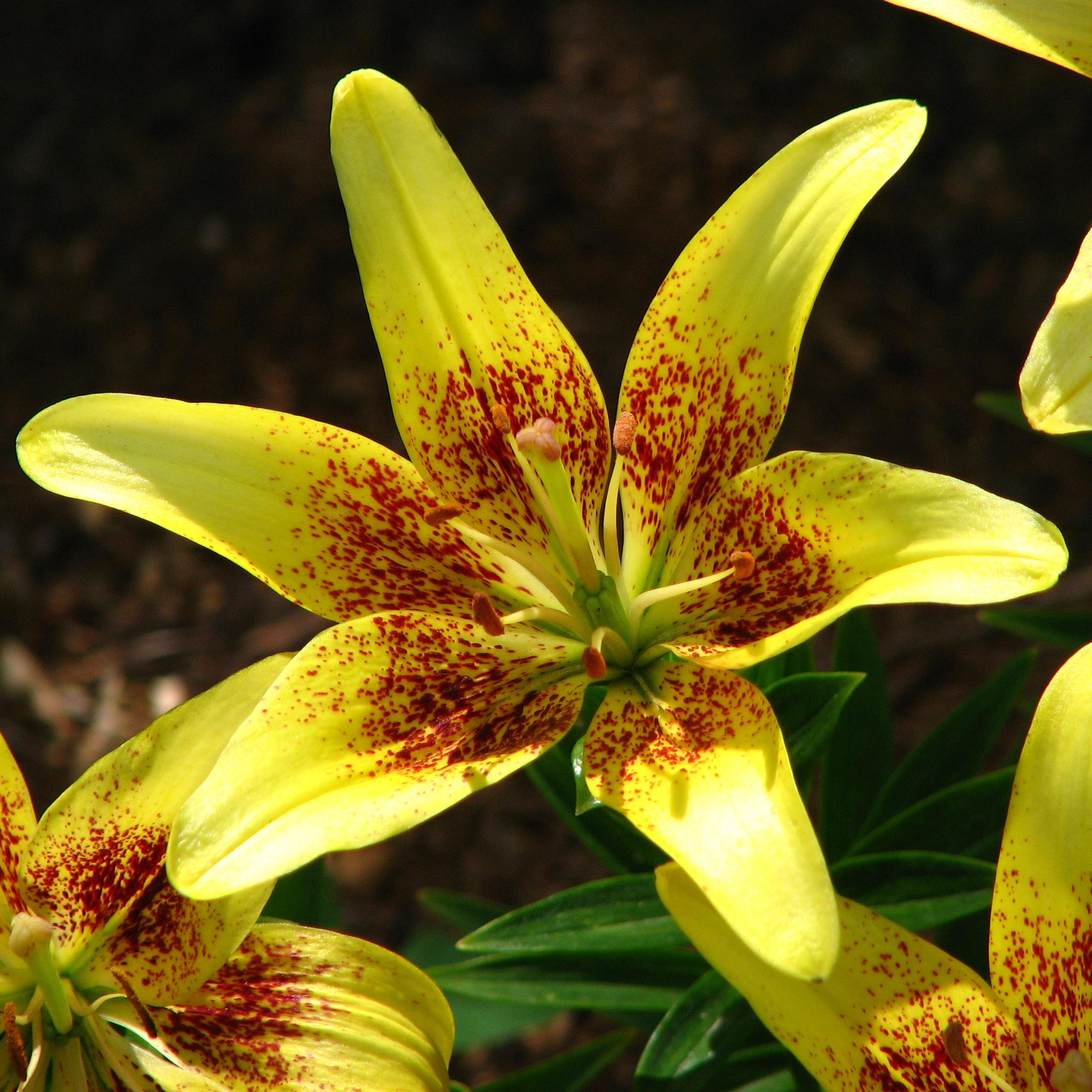 Лилия азиатская Латвия (Lilium asiatic Latvia) даст прекрасные цветы с мягким, едва уловимым ароматом, идеально подходящие для украшения помещений и расстановки в букетах. Высота стебля 90-110 см, стебли прочные прямостоящие, диаметр цветка 15 см, начинает цвести в конце июня, заканчивает в начале августа. Цветы ярко-желтые, обильно усыпанные крапинками. Часто крап настолько обилен, что середина лепестка кажется коричневой. Длина лепестка — 10 см, тычинки темные охристые. Для высадки в открытом грунте Лилии азиатские Латвия предпочитают солнечные места и полутени, хорошо дренированную почву.