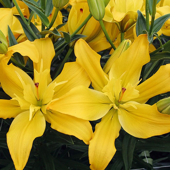 Луковицы Лилии азиатской махровой Кенсингтон (Lilium asiatic Kensington) порадуют любителей редких сортов. Ярко-желтые цветы с зеленым налетом у основания достаточно крупные ― около 15 см в диаметре. Подходят для выращивания аллергиками, так как не имеют запаха и не выделяют пыльцу. При посадке нужно учитывать, что свою пышную махровость Лилия азиатская Кенсингтон покажет только на второй год. Период цветения продолжительный ― с июля по август. Относится к морозостойким сортам, способна успешно перезимовать при температуре до -34 градусов, но укрывать ее все же желательно.