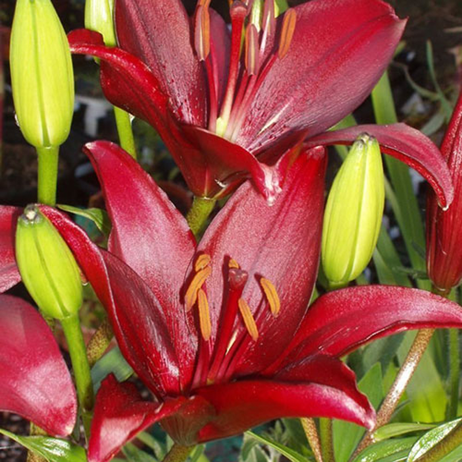 Лилия азиатская Навидад (Lilium asiatic Navidad) придаст цветнику нотки энергии и страсти своими огненно-красными цветами с темными подпалинами.