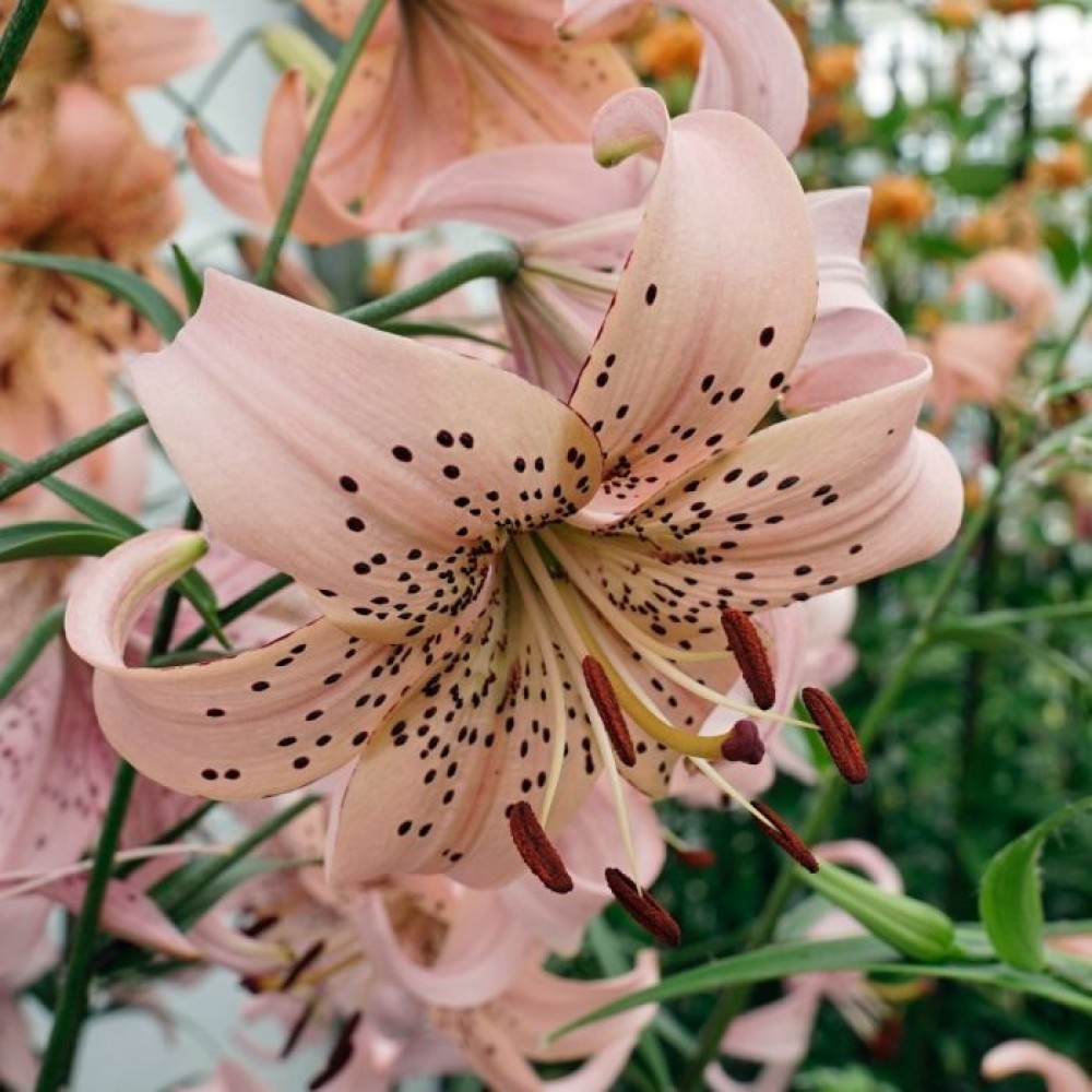 Азиатская лилия Пинк Джайант ― луковичный многолетник со светло-розовыми цветками в темно-бордовую крапинку. Светолюбивый цветоносец растет в рыхлой, песчано-глинистой, удобренной почве на открытых солнечных участках. Растение неприхотливое и выносливое. Отличается морозостойкостью, поэтому пригодны для выгонки во внесезонное время. При регулярном поливе и хорошо подобранных подкормках кустарник будет цвести на протяжении двух месяцев подряд (в июне-июле). Лилия азиатская Пинк Джайант растет быстро и достигает 80-ти сантиметров в высоту. Быстро приспосабливается к неблагоприятным условиям. Pink Giant придаст яркие нотки любой цветочной посадке.
