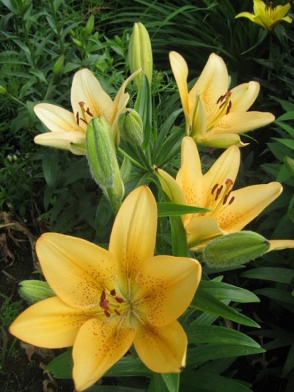 Лилия Bestseller - растение высотой 105 см. Цветок кремовый, с темным крапом и желтым центром, крупный. Диаметр цветка - 16 см. Цветки смотрят вверх. Цветет растение в конце июля. Сорт зимостойкий, не требует укрытия на зиму. Предпочитает солнце и полутень.
