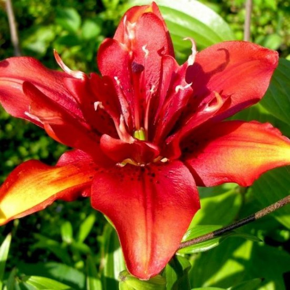 Лилия азиатская махровая Коктейль Твинс (Lilium asiatic Coctail Twins) - высокие, до 110 см, цветы с продолжительным периодом цветения. Многолетнее декоративное растение предпочитает хорошо дренированные, плодородные почвы, светлые теплые, хорошо проветриваемые места для посадки. Зимой требует укрытия только в первый год жизни затем можно ограничиться мульчированием почвы. Цветки крупные, диаметром до 17 см, блестящие, глянцевые, с множеством плотных лепестков ярко-красного цвета. Используется Лилия азиатская махровая Коктейль Твинс в миксбордерах, групповых посадках, на клумбах, для срезки.