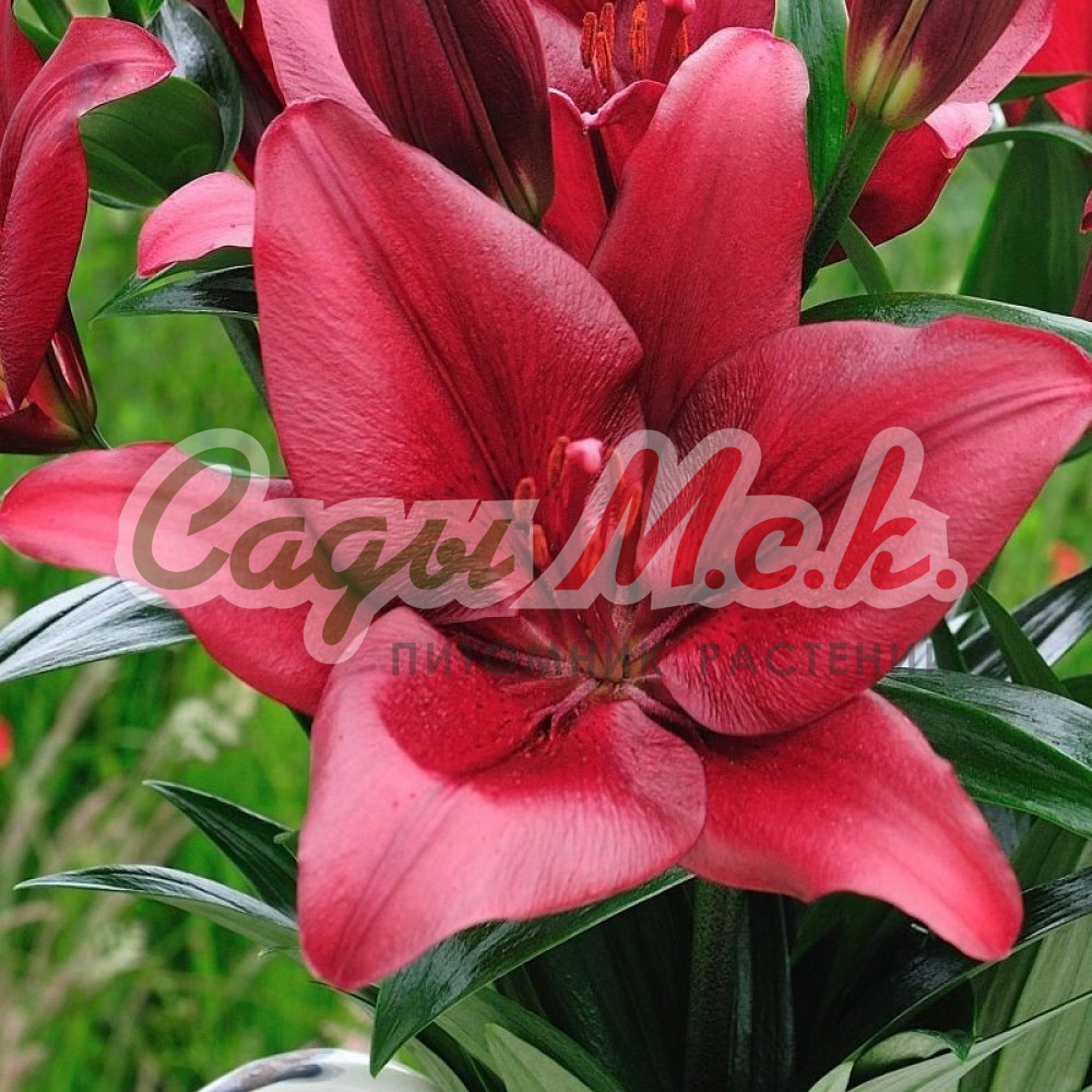 Лилия Laksmi - крупноцветковая, мощная лилия. Цветки ярко-малиновые, глянцевые, почти однотонные, у основания - светлее. Соцветие плотное, состоит из 8-10 бутонов, направленных вверх. Цветки с широкими лепестками, плотной фактуры, диаметром 21 см. Высота взрослого растения достигает 140 см.