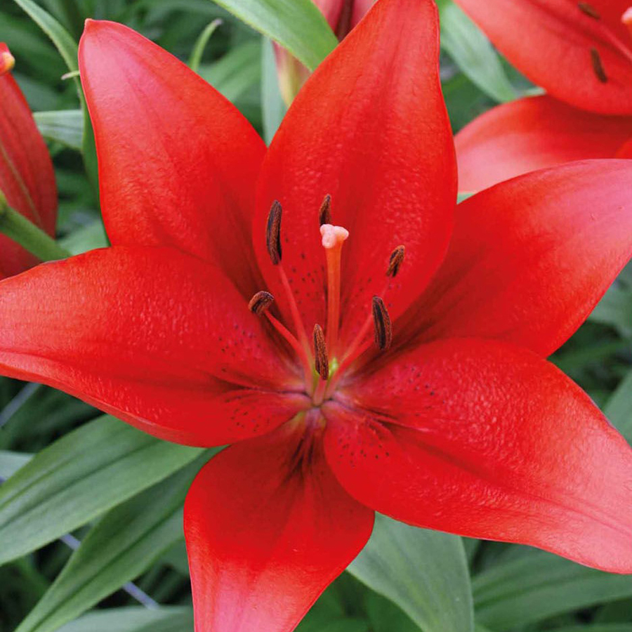 Лилия ЛА-гибрид Рилусида (Lilium LA-hybrid Rilusida) даст вам возможность вырастить настоящий шедевр. Для этого на солнечном участке в области хорошо дренированных грунтов и питательных почв весной или осенью высаживаются бульбочки. Через 1-1,5 месяца можно будет наблюдать произрастание прямых густооблиственных стеблей высотой 95 см, на которых начинает формироваться крупный бутон. Под воздействием солнечного света и при регулярном умеренном поливе этот бутон превращается в непревзойденной красоты цветок с насыщенным красным оттенком. Тому, кто любит такую броскую и экстравагантную гамму цветов, специалисты рекомендуют обратить внимание именно на Лилию ЛА-гибрид Рилусида.