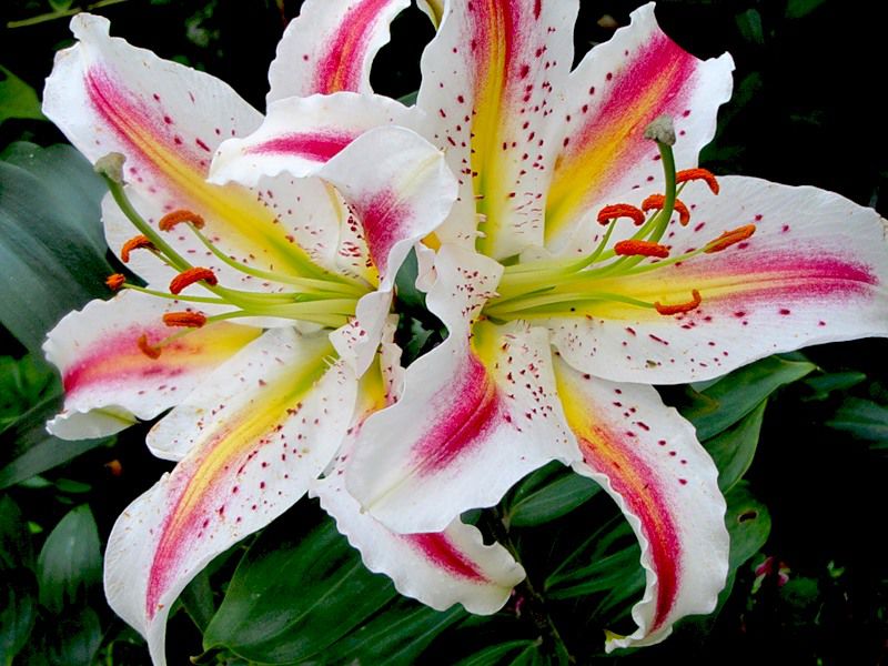 - Характеристики ЯРКИЙ ЭФФЕКТНЫЙ ОКРАС, КРУПНЫЙ, по белому фону темно-розовый крап и яркие мазки: от центра желтые, к середине красно-розовые, диаметр цветка 25 см