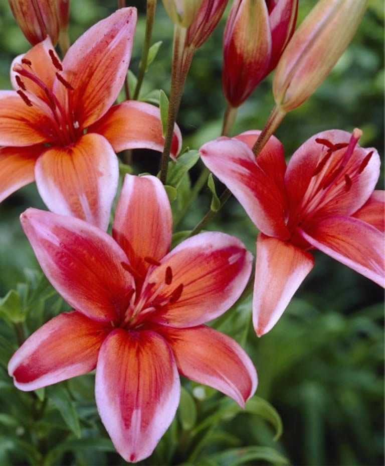 - Характеристики красно-оранжевый, с широким палево-розовым кантом, лепестки загнуты вниз, диаметр цветка 11-15 см
