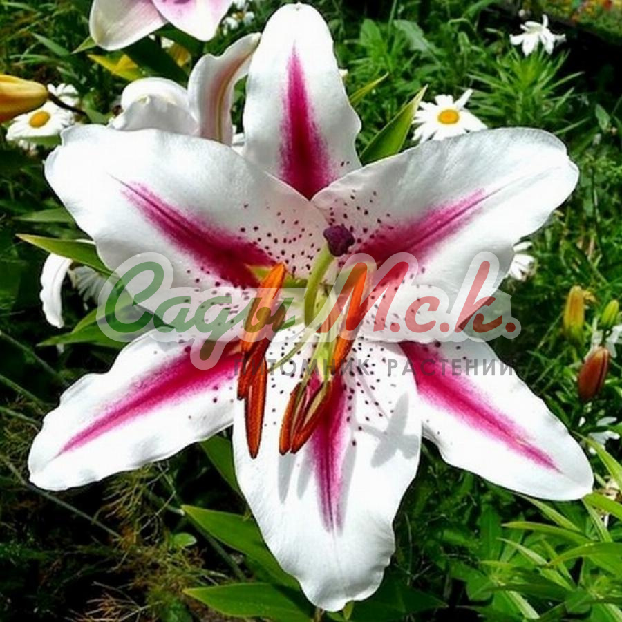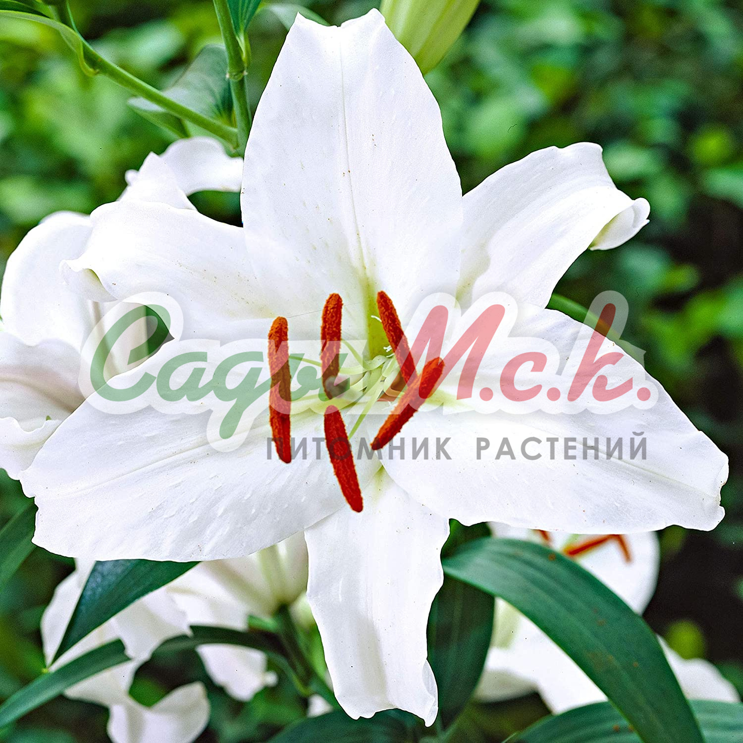 Луковицы лилии восточной Астериан (Lilium oriental hybrids Asterian) — это лучший вариант для выращивания под срез. На одном стебле одновременно распускается несколько цветов, по 15 см в диаметре. Они окрашены в классический белый цвет с яркими оранжевыми пыльниками. Лепестки очень долго не осыпаются, поэтому букеты отлично переносят хранение и транспортировку. Выращивать лилию Астериан можно в теплице или в открытом грунте. Цветам не страшны заморозки (под укрытием) и прямые солнечные лучи. Если выбрать подходящее место под посадку и периодически вносить минеральные удобрения, Лилия восточная Астериан может оставаться на одном месте до 5 лет без пересадки и ежегодно цвести.