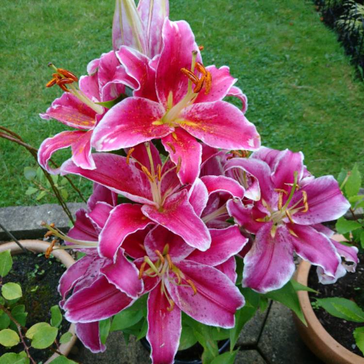 Луковицы лилии восточной горшечной Старлайт Экспресс (Lilium oriental Starlight Express) — стильное решение для украшения сада и выращивания в горшках. Кусты не отличаются крупными размерами и вырастают до 55 см в высоту, но они очень пышные. В конце лета начинают распускаться бутоны в большом количестве и практически полностью закрывают собой зелень. Цветы достигают 19 см в диаметре, очень ароматные. Они ярко-розовые с волнистой белой каймой и плавным градиентом к темно-бордовому центру. Лилия Старлайт Экспресс проста в уходе. Если ее поливать, подкармливать минеральными смесями и укрывать на зиму, она стойко переносит перепады температур и может оставаться на зиму в открытом грунте. Благодаря небольшому размеру Лилию восточную горшечную Старлайт Экспресс также выращивают в качестве домашнего растения в горшках.