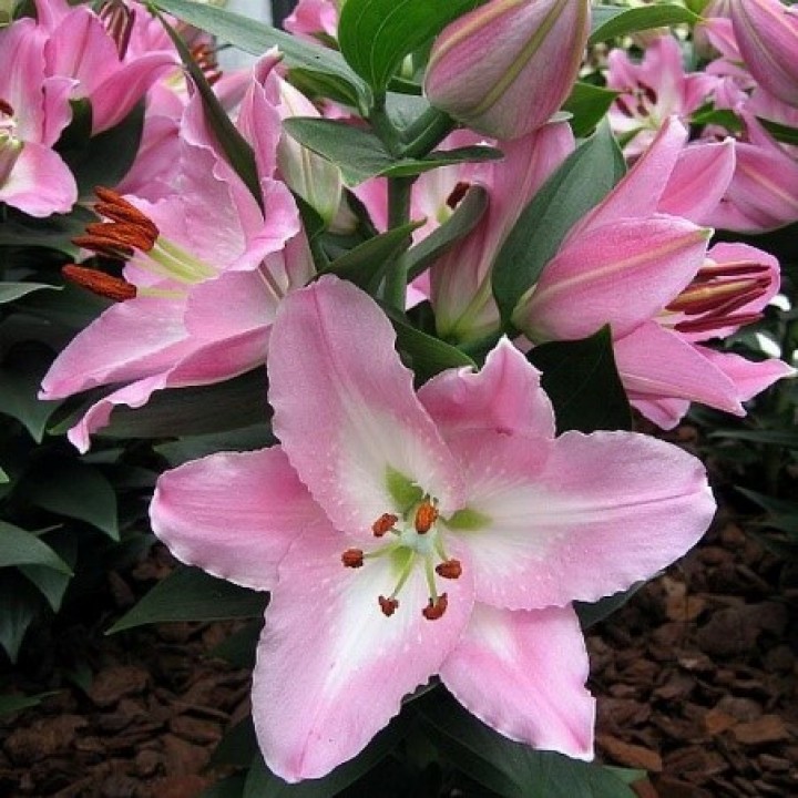 Лилия восточная горшечная Сувенир (Lilium oriental Souvenir) подарит клумбам экзотическую привлекательность. Огромные цветы яркой раскраски на коротких стеблях около 40 см с сильным ароматом покорят каждого любителя буйства красок своей нежностью и размерами. Идеальным местом для посадки будет рыхлая, богатая питательными веществами известковая песчано-глинистая почва с расположением в теплом солнечном или полутеневом месте. Также нужен хороший дренаж. Лилия восточная горшечная Сувенир требует укрытия на зиму, отлично смотрится в групповых и смешанных посадках на открытом грунте.