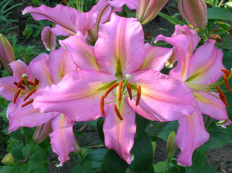 Лилия Color Parade - восточный гибрид. Цветок цвета фламинго с желто-розовыми прожилками и тонкой белой каймой, редкий крап, гофре. Высота взрослого растения - 110 - 130 см. Период цветения - июль-август. Сорт зимостойкий.