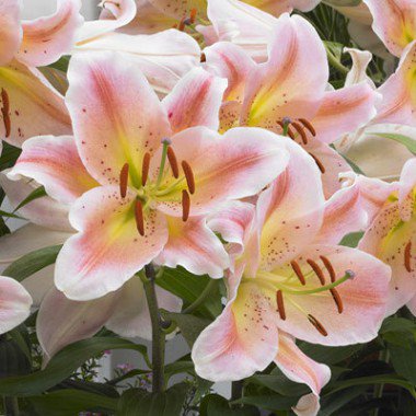 Лилия Salmon Party является редким ориентальным луковичным гибридным сортом. Взрослое растение достигает до 160 см в высоту и имеет крепкие, прямые стебли. На стеблях располагаются поочередно крупные (до 15 см в длину), темно-зеленые, цельнокрайние листья. Цветки этого сорта большие, до 25 см в диаметре, с волнистыми лепестками, окрашены в желто-оранжевый цвет: оранжевая полоса вдоль всего лепестка. Цветки направлены вверх и имеют характерные темные вкрапления. Растет сорт на плодородной, хорошо рыхленной и увлажненной почве, предпочитает солнечное месторасположение, но переносит и легкую полутень.