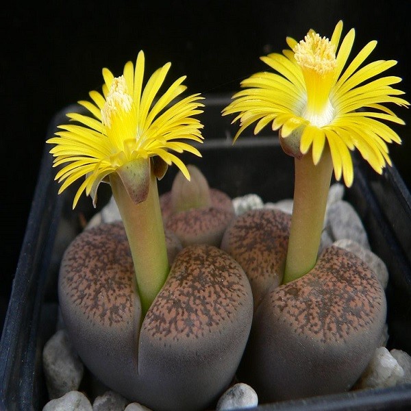 Литопс Lesliei - hастение суккулентное, состоит из пары очень толстых листьев 2-4 см шириной, разделенной трещиной около 0,5 см глубиной. Листья обратно-конусовидные, на вершине плоские или чуть выпуклые, эллиптической или слегка почковидной формы. Окраска листьев желто-коричневая, серо-желтая, оранжевая, ржавая, бело-серая, на вершине с тонким кружевом зеленовато-коричневых пятен и борозд. Несмотря на изменчивые цвета, форма этого вида является относительно однородной и вообще узнаваемой по его зеленым окнам или каналам. Цветок около 3-5 см в диаметре, есть желтые и белые вариации.