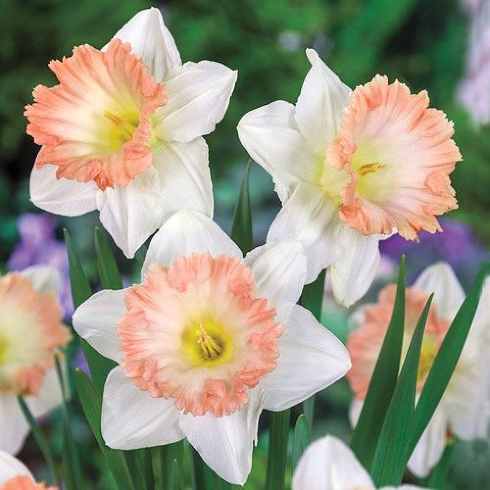 Нарцисс трубчатый Бритиш Гэмбл - оригинальный, многолетний сорт. Нарциссы - культура более теневыносливая по сравнению, например, с тюльпанами, но на освещенных местах цветение значительно выше, чем в тени. Цветки крупного размера, одиночные, белые, с нежной сливочно-лососевой коронкой. Растение неприхотливое в выращивании, стебель прямостоячий, крепкий. Нарцисс Бритиш Гэмбл рекомендуется для ландшафтного оформления, срезки, выгонки.
