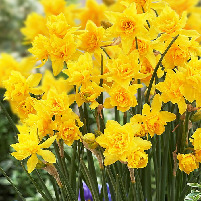 Нарцисс Дабл Кампернель - многоцветковый сорт с махровыми цветками. Высота растения 30 см. На одном цветоносе может развиваться одновременно по 3 цветка. Цветки ароматные, пышные, с заостренными лепестками ярко-желтого оттенка. Нарцисс Дабл Кампернель широко используется в озеленении, как раннецветущее растение.
