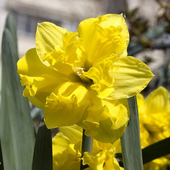 Нарцисс Флайер - раннецветущий, многолетний сорт. Нарциссы - культура более теневыносливая по сравнению, например, с тюльпанами, но на освещенных местах цветение значительно выше, чем в тени. Цветки с приятным ароматом, крупного размера, одиночные, желтого цвета с гофрированной коронкой. Растение неприхотливое в выращивании, стебель прямостоячий, крепкий. Нарцисс Флайер пользуется особой популярностью в декоративном садоводстве, их выращивают в открытом грунте на клумбах.