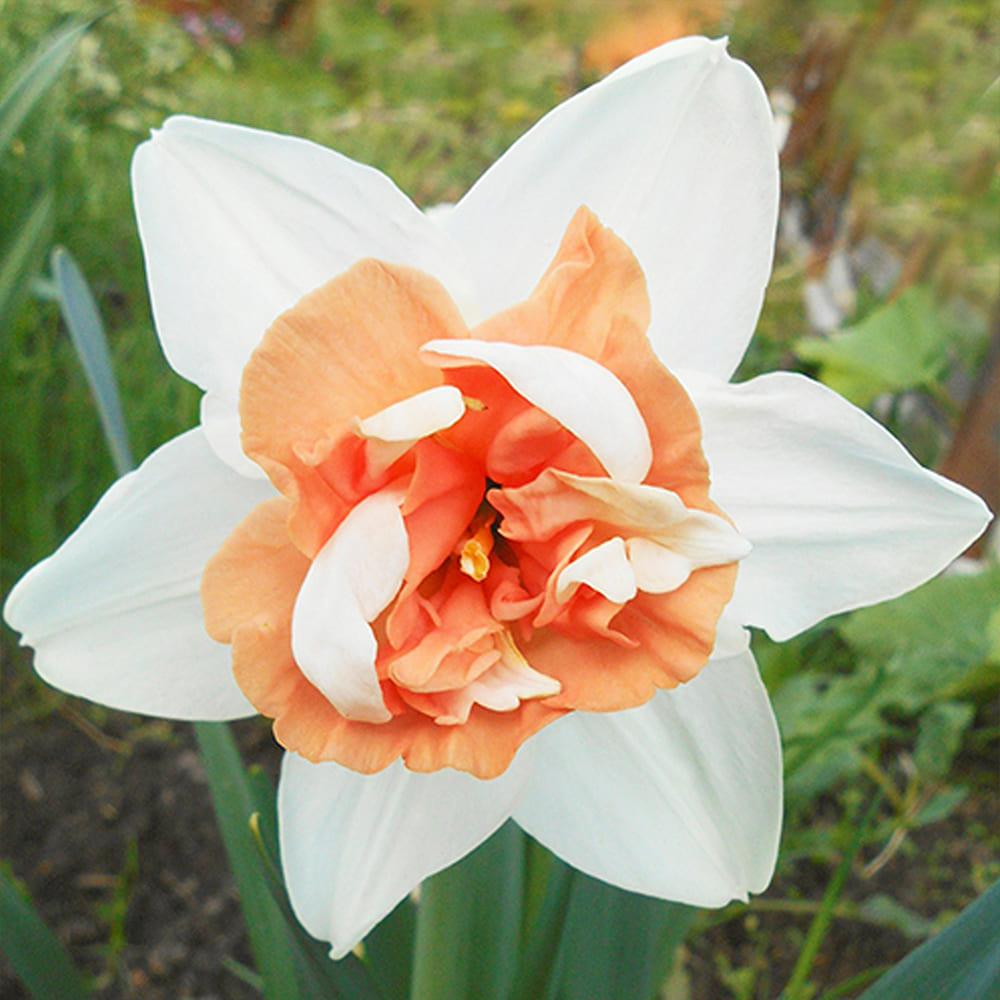 - Характеристики белый, с оранжевой, густомахровой коронкой