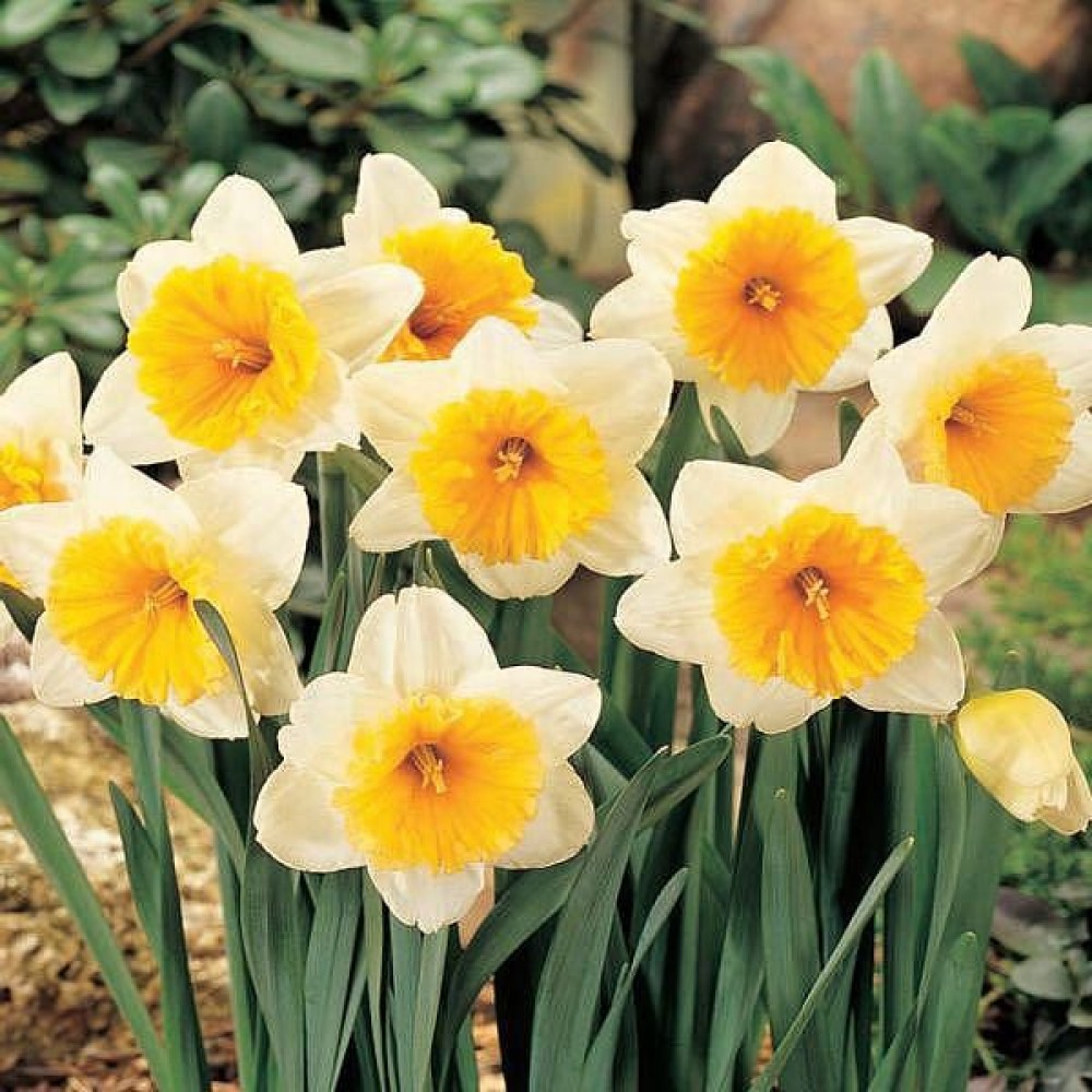 Нарцисс Слим Витмэн в период цветения наполнит сад весенней музыкой и очаровательными красками. Недаром сорт назван в честь Слима Уитмана, известного исполнителя музыки в стиле кантри и фолк. Достаточно высокорослый нарцисс, вырастающий до 40 сантиметров, отличается белыми лепестками и сильно гофрированной оранжево-желтой коронкой. Поражает и диаметр цветков: он составляет около 12 сантиметров. Идеальна высадка таких нарциссов группами, чтобы в период цветения они полностью покрывали прекрасными цветами небольшой участок земли. Нарцисс Слим Витмэн эффектно будет смотреться и с ярко-красными тюльпанами.