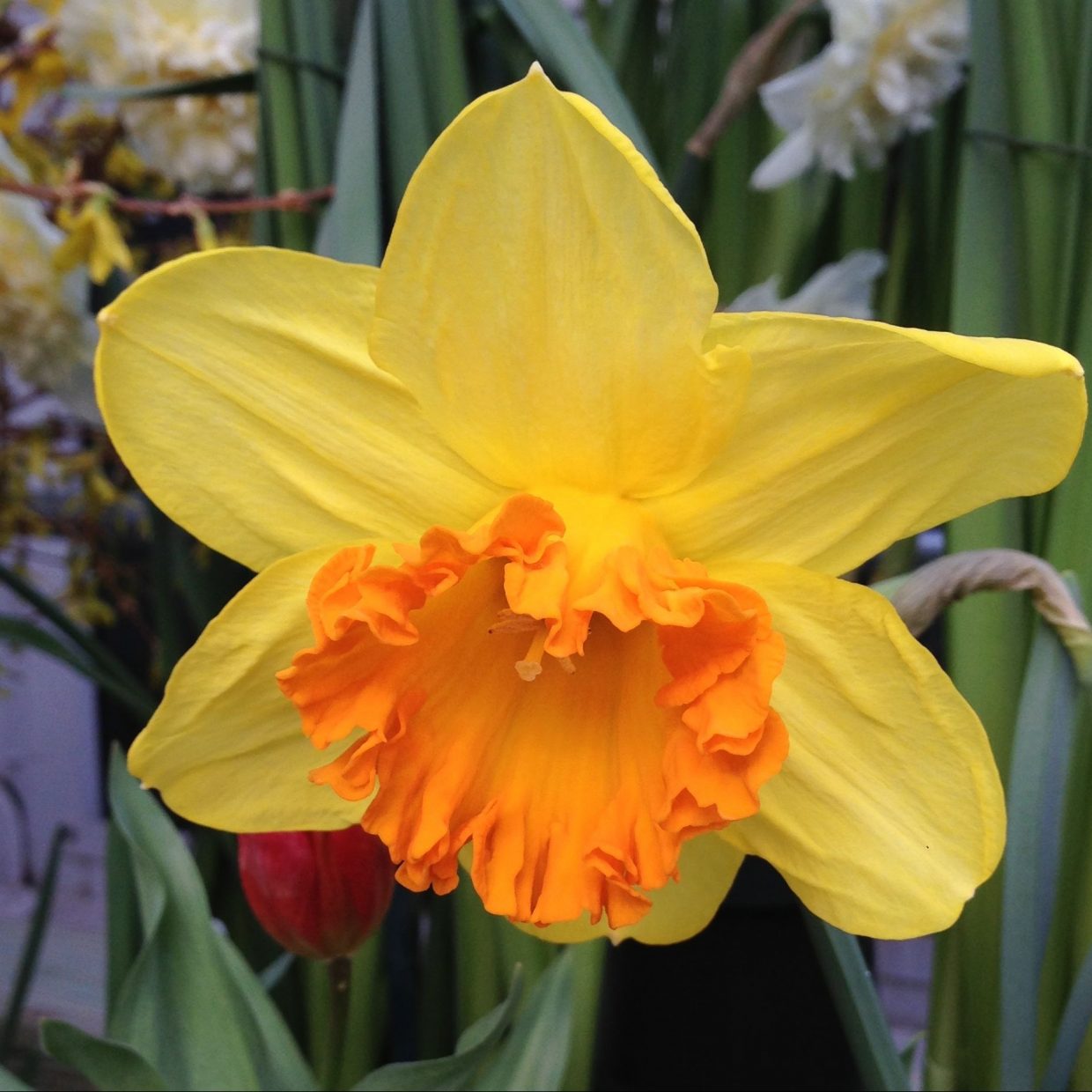 - Характеристики жёлтый с оранжевой гофрированной коронкой, яркий