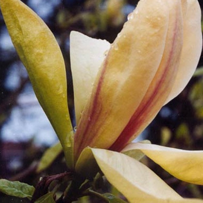 Позднецветущий сорт магнолии с оригинальными двухцветными желто-розовыми цветами с редкими фиолетовыми прожилками. Растет в виде небольшого деревца или кустарника высотой до 3-4 м. Побеги вертикальные.