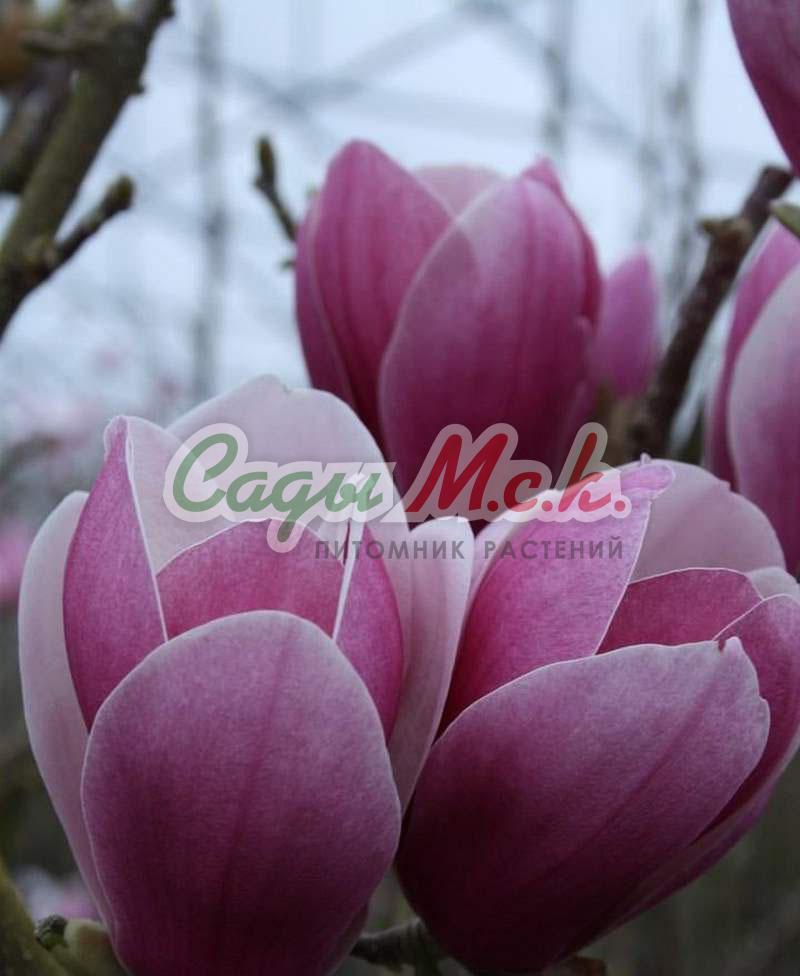Магнолия Суланжа ‘Satisfaction’ — кустарник с медленным темпом роста, с закругленной формой. Листья темно-зеленые, снизу более светлые, опадают на зиму. Цветет обильно на переломе апреля и мая, до появления листьев или одновременно с их появлением. Цветы чашеобразные, багрово-розовые, душистые. Через 10 лет достигает около 2,5 м высоты и такой же ширины. Лучше всего растет на солнечном месте, защищенном от ветров. Магнолия для посадки предпочитает плодородную, влажную, гумусную и слегка кислую почву. Зимой нужно укрыть ее корневую ситему от промерзания. Благоприятно применять подстилку всего года