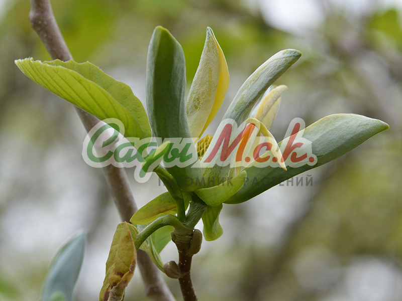 Цветёт в июне, сине-зелеными, нежно ароматными цветками в бутонах, после распускания внутренняя сторона лепестков желтая, синие крупные соцветия выглядит не обычно на фоне высокого дерева. Листва крупная от 10-15см, овальная, летом насыщенно зеленая, слегка кожистая, осенью золотисто желтая. Плоды несъедобные, ярко красные, что придает дереву еще большую декоративность, не только в начале лета, но и осенью, сентябрь-октябрь.