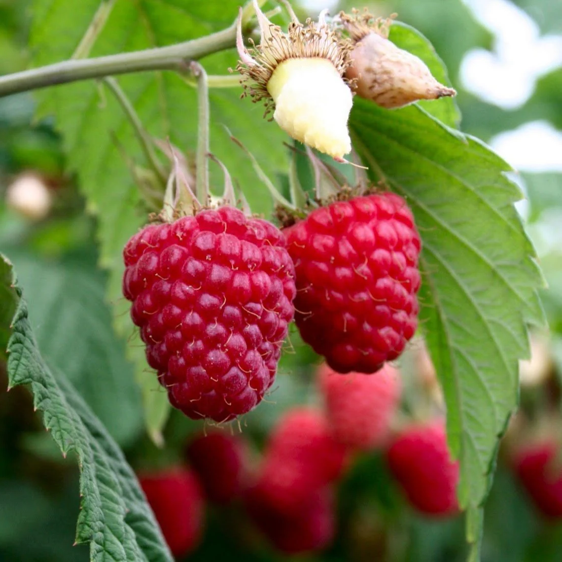 Малина Августина относится к ремонтантным сортам. Растение формирует компактные раскидистые кусты не выше 2 м. Прочные пряморослые побеги покрыты некрупными мягкими шипами. Августина плодоносит в два этапа. Первый приходится на первую половину июня. Основное плодоношение начинается после 10 августа и продолжается до заморозков. Одномерные ягоды формы усеченного конуса. Ягоды крупные, на вкус сладкие. Окраска спелых плодов становится ярко-рубиновой. Ягоды плотные, транспортабельные, могут сохраняться на растении после созревания без потери качества до недели. Урожайность может составлять от 3 до 4,5 кг на каждый куст. Сорт рекомендуется для универсального применения.
