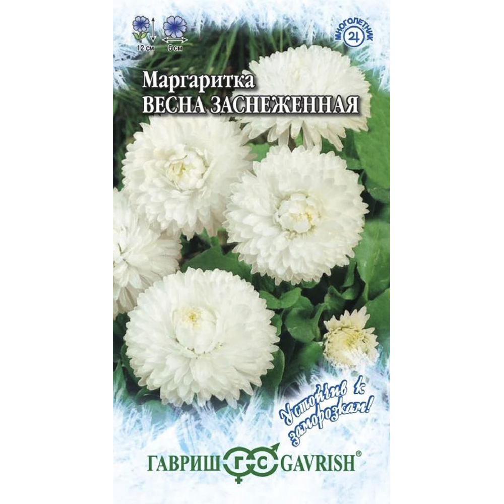 Неприхотливое, очень зимостойкое растение из семейства Астровые высотой 12 см. Розетка листьев компактная. Соцветия необычно крупные, до 6 см, изящные, «лучистые», белой окраски. Цветет в апреле-июле, при хорошем уходе цветение продолжается до осени с перерывом в жаркий период сезона. Хорошо растет на любых почвах. Светолюбивое растение, но хорошо выдерживает легкое затенение. Семена высевают в конце июня - начале июля в открытый грунт, всходы появляются через 7-10 дней. Маргаритка прекрасно подходит для выращивания на клумбах, рабатках и в бордюрах, а также в горшках и балконных ящиках.