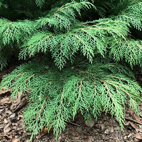 Микробиота перекрестнопарная - это уникальное однодомное растение. Ажурные, мягкие, ветвящиеся в одной плоскости ветви микробиоты нарастают у взрослых экземпляров горизонтальными ярусами до метра в высоту. Ветви гибки и упруги настолько, что не ломаются не только под толщей снега, но и выдерживают вес человека (в природе заросли микробиоты выдерживают медвежью поступь). Корневая система микробиоты глубокая и сильно разветвленная, не формирующая плотного земляного кома, поэтому взрослые экземпляры очень плохо переносит пересадку.