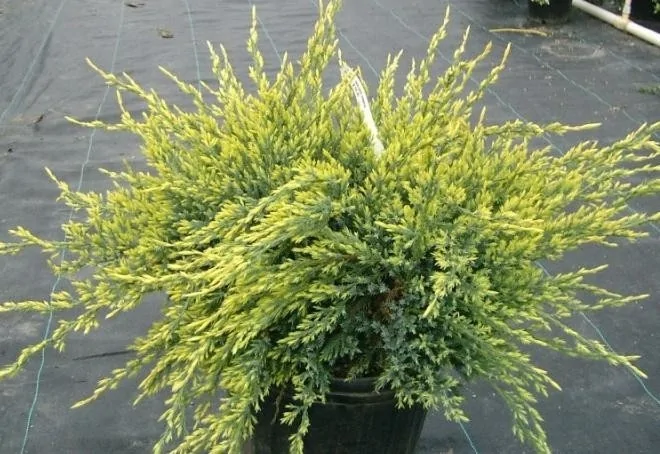 Можжевельник Holger - вечнозеленый хвойный кустарник. Крона раскидистая вырастает до 0,8 м в высоту и 1,5 м в диаметре. Хвоя белесо-синяя. Побеги текущего года имеют золотистый оттенок. Плоды – мелкие темно-синие с сизым налетом шишкоягоды. Кустарник очень декоративен как в одиночной посадке, так и в составе больших и малых ландшафтных композиций.