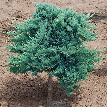 Кустарник стелющийся, почвопокровый. Цвет зелёно-голубовато-серебристый, зимой фиолетоватый.
