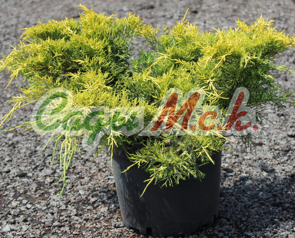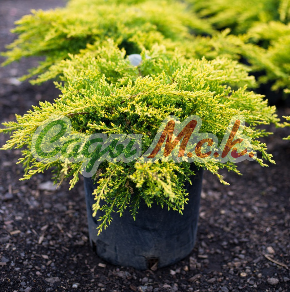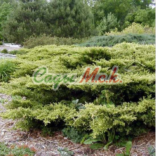 Можжевельник Mordigan Gold - очень широкий распластанный сорт до 1,2 м высоты при ширине 2 м. Ветки горизонтально распростертые, с поникающими концами. Хвоя в основном игловидная, на ростовых побегах полу-прижатая, желтовато-зеленая, весной ярко-желтая.