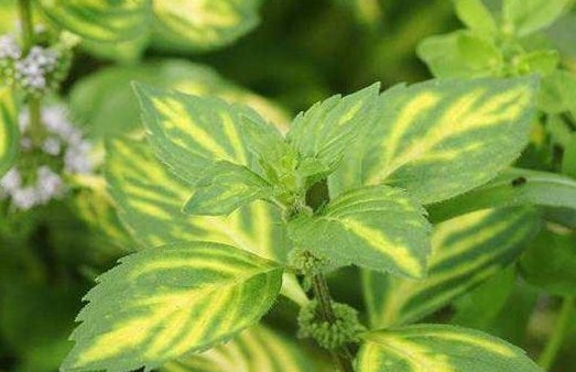 Мята Ginger Mint - растение высотой 45 см. Листья небольшие, светло-зеленые с золотисто-желтыми штрихами, обладают сильным ароматом имбиря. Используют для приготовления чая, украшения готовых блюд.