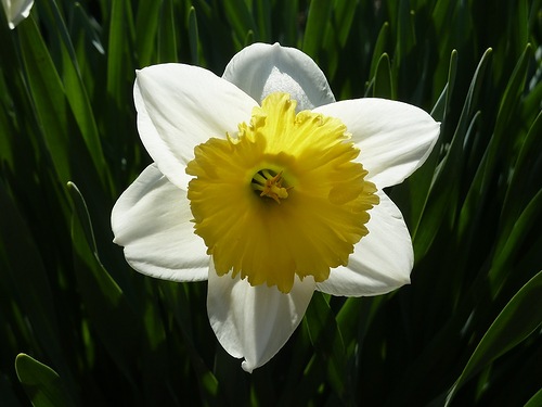 Нарцисс Elton Legget - среднего срока цветения. Высота растения 45–47 см. Диаметр цветка 8–10 см. Доли околоцветника белые, округлые. Коронка, воронковидная, бледно-лимонная.