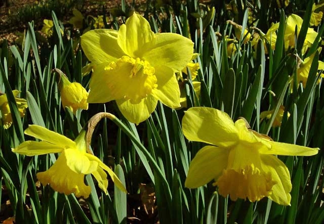 Нарцисс Carlton - доли околоцветника ярко-желтые. Диаметр цветка 10 см и более. Коронка высотой 2,5-3 см и диаметром 3-3,5 см, темно-желтая. Цветонос прочный, высотой 50 см. Продолжительность цветения 12-15 дней. Один из лучших ранних сортов.