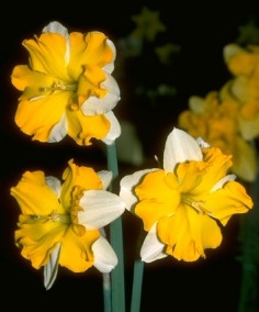 Нарцисс Palette - позднего срока цветения. Высота растения 38–42 см. Диаметр цветка 6–7 см. Доли околоцветника кремово-белые. Коронка лимонная, разрезная, гофрированная, по краю с узкой светло-оранжевой каймой.