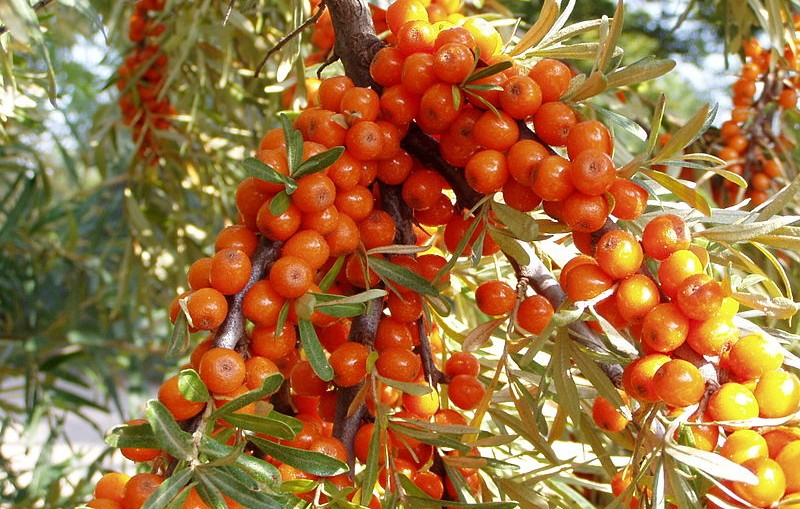 Облепиха Янтарная - позднего (конец августа - начало сентября) срока созревания. Морозоустойчивый, устойчивый к вредителям и болезням..Универсального направления. Невысокий кустарник со сдержанной силой роста. Крона раскидистая, редкая. Колючек очень мало. Плоды очень крупные , овально-цилиндрические, оранжевые, сладкие, длина плодоножки 2-3 мм.