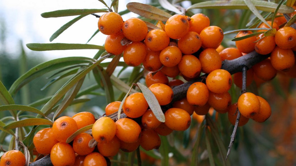 Саженцы облепихи Любимая буквально через 2-3 недели после посадки превращаются в раскидистые, кустарниковые растения с кроной округлой формы. На побегах и ветвях присутствуют колючки. Плоды крупные, плотные светло-желтого цвета и цилиндрической формы, с удлиненной плодоножкой. Она не лопается и легко срывается. Мякоть у ягоды с приятным сладким вкусом. Ягоды отлично сбалансированы по наличию в них органических кислот и сахаров, богаты витаминами. Крупномер Любимая плодоносит каждый год и обильно, У него хорошая зимостойкость.