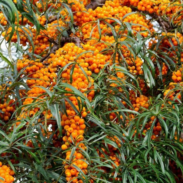 Подарок саду это облепиха, специально выведенная для выращивания в Москве и Подмосковье. Сорт отличается отличной зимоустойчивостью, также не подвержен болезням и нападениям вредителей, шипы только на окончаниях побегов. Обильное (до 15 кг и больше) плодоношение у кустарника начинается на 3-4 год от посадки. Созревание ягод облепихи Подарок сада довольно раннее, под конец августа. Плоды ярко оранжевого цвета с покраснением, крупного размера до 0,8 г, слабым ароматом, но очень приятным кисло-сладким вкусом. Отрыв ягод сухой, транспортабельность хорошая, назначение кустарника и ягод – универсальное.
