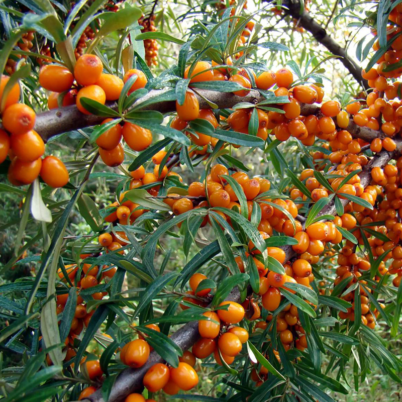 Саженцы облепихи Злата на сегодняшний день весьма востребованы. Растение среднерослое и слабораскидистое. Побеги тонкие, прямые и без колючек. Листья светло-зеленого цвета, средних размеров. Лист имеет блестящую среднеопушенную пластинку. Крупномер Злата имеет средний срок созревания и универсальное назначение.Плоды округло-овальные, оранжевого цвета, сладкого вкуса, кожица средней толщины. Плоды облепихи содержат: 1,8% кислоты, сахара 5,6% ,88 % витамина С, 2,8% масла. Ягоды крупные, собираются в плотном початке. Подходит для срезки и заморозки.