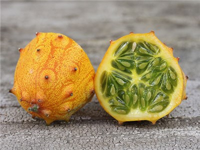 Модная съедобная диковинка из семейства Тыквенные, по вкусу напоминающая огурец, банан и киви одновременно. Плоды выглядят, как овальная оранжево-желтая дыня длиной до 15 см с мягкими шипами. Кожица плотная и несъедобная, а вот зеленоватая мякоть очень сочная, с бледно-зелеными семенами, имеет деликатесный вкус с небольшой освежающей кислинкой. Едят плоды сырыми, используют для фруктовых коктейлей, блюд из рыбы. Растения с плетями до 3 м длиной, теплолюбивые, устойчивые к вредителям и болезням, нуждаются в подвязке и удалении боковых побегов. Семена на рассаду высаживают в феврале-апреле. Оптимальная для роста и плодоношения температура 20-26°С.