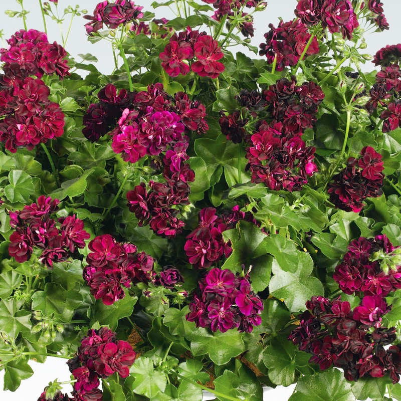 Плющелистная пеларгония PAC Tommy, ампельная, с красивыми, тёмными, бархатными цветами. Обильно цветёт шикарными цветами - что цвет, что форма цветка. В середине цветка малиновые тычинки, с переливом в белый цвет. Сами лепестки тёмно - бордовые, с переходом в черничный, фиолетовый, по виду бархатные. Создаётся ощущение, что цветок переливается. Цветение частое, бутоны образуются начиная с конца зимы - начала весны.