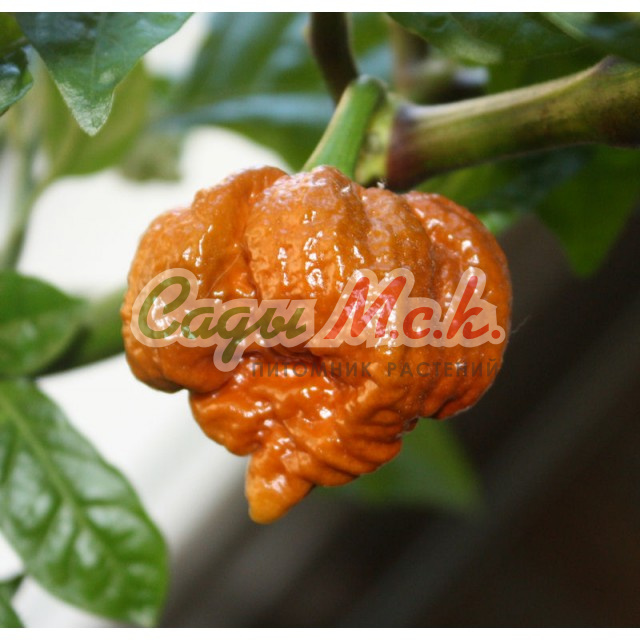 Среднеспелый (110-115дней) сорт родом из Мексики, выращивается в теплицах и пленочных укрытиях. Растение прямостоячее, мощное, высотой 80-90 см. Плоды морщинистые, по форме напоминают фонарики, длиной 4-5 см, шириной 2-3 см, массой 30-50 г, в технической спелости светло-зеленые, в биологической – ярко-желтые, отличаются высокой остротой и ярко выраженным перечным вкусом, и неповторимым ароматом, присущим только данному сорту. Ценность сорта: неприхотливость выращивания, высокая урожайность, обильное и продолжительное плодоношение, с одного куста можно получить более 900 штук плодов. Степень остроты по шкале Сковилла составляет от 200000-350000, это один из самых жгучих перцев, который является основным ингредиентом в известных соусах Табаско и Сальса. Все разновидности перцев «Хабанеро» богаты алкалоидами (капсаицином), витаминами А, В, С, D, микроэлементами (йод, калий, железо, марганец, медь, кальций, натрий). Имеют обезболивающее и антибактериальное действия, ускоряют метаболизм. Это отличный антиоксидант, замедляет процесс старения, повышает стрессоустойчивость. Настойки и компрессы из перца снимают боль и воспаление при артрите, подагре и ревматизме. Сильный афродизиак (особенно для мужчин), способен стимулировать выработку «гормонов счастья». Рекомендуется для употребления в качестве острой специи к разнообразным блюдам, в маринадах и приправах. Хорошо сочетается с мясом, овощами и фруктами. Прекрасное декоративное растение для контейнерной или горшечной культуры.
