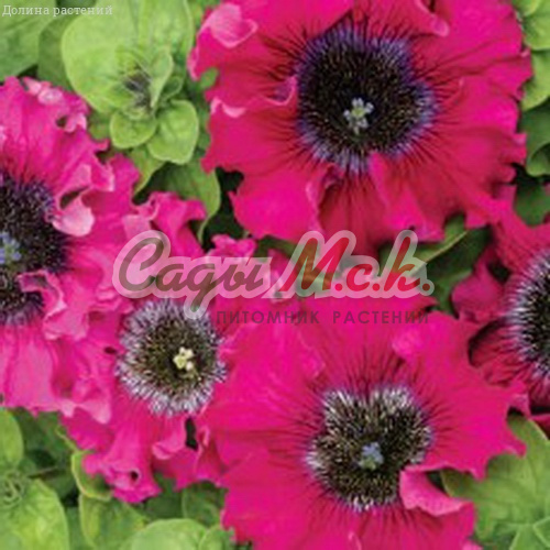 Растение образует сильно ветвящийся куст высотой 25-30 см. Цветки розово-красные, лиловые, светло-фиолетовые, нежно-розовые с более темными по тону прожилками, 7-10 см в диаметре, с ровным краем. Выращивают рассадным способом. Посев проводят с января по апрель, поверхностно, под стекло (после появления всходов стекло убирают). В зимние месяцы январь-февраль досветка обязательна. При ранних сроках посева цветение начинается в мае, что очень удобно для выращивания растений на балконе, закрытых террасах, патио. Без дополнительного освещения петунию высевают не раньше марта. Всходы появляются через 7-12 дней. На постоянное место высаживают, когда минует опасность заморозков. Светолюбива и достаточно засухоустойчива. Предпочитает легкие, плодородные, хорошо дренированные почвы. Петунии можно выращивать в течение нескольких лет, сохраняя зимой в освещенном помещении (растение сильно обрезают, t не более +12°С, умеренный полив). Петуния используется как фоновое и балконное растение, в контейнерах, вазах, для украшения подоконников, для посадки в рабатки, бордюры. Цветет обильно с начала мая до заморозков.