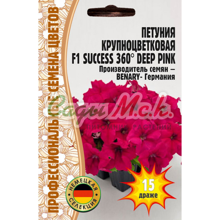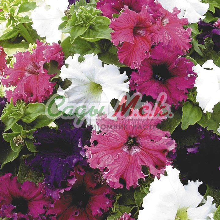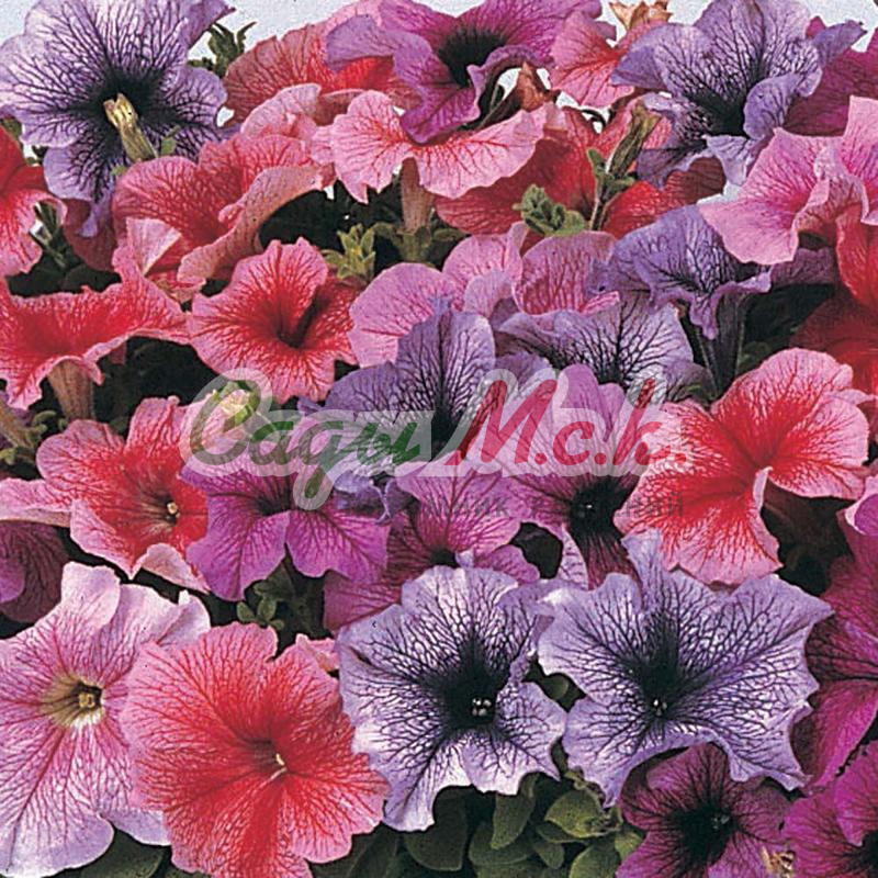 Растение образует сильно ветвящийся куст высотой 40-45 см. Цветки темные, пурпурно-красные, 7-10 см в диаметре, с ровным краем. Выращивают рассадным способом. Посев проводят с января по апрель, поверхностно, под стекло (после появления всходов стекло убирают). В зимние месяцы январь-февраль досветка обязательна. При ранних сроках посева цветение начинается в мае, что очень удобно для выращивания растений на балконе, закрытых террасах, патио. Без дополнительного освещения петунию высевают не раньше марта. Всходы появляются через 7-12 дней. На постоянное место высаживают, когда минует опасность заморозков. Светолюбива и достаточно засухоустойчива. Предпочитает легкие, плодородные, хорошо дренированные почвы. Петунии можно выращивать в течение нескольких лет, сохраняя зимой в освещенном помещении (растение сильно обрезают, t не более 12°C, умеренный полив). Петуния используется как фоновое и балконное растение, в контейнерах, вазах, для украшения подоконников, для посадки в рабатки, бордюры. Цветет обильно с начала мая до заморозков.