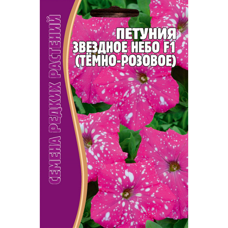 Этот космический цветок имеет уникальную расцветку напоминающую звёздное небо. Каждый цветок индивидуален: форма и количество белых вкраплений меняется в зависимости от погодных условий. Растения высотой 30-35 см. Активно растут и развиваются, формируя симпатичные, плотные кустики с большим количеством цветков Ø 6-7 см. Яркая петуния украсит любую клумбу, вазон, подвесное кашпо, став изюминкой вашего сада! Посев на рассаду с февраля до апреля. Семена в гранулах! Посев поверхностный, без заделки (семена прорастают на свету!), под стекло или пленку для сохранения постоянной влажности до полных всходов. Гранулы при посеве должны раствориться! Февральским посевам требуется дополнительная подсветка. Всходы появляются на 5-6 день. Пикировка в фазе 1-2-х настоящих листьев. Высадка в грунт закаленной рассады в конце мая.