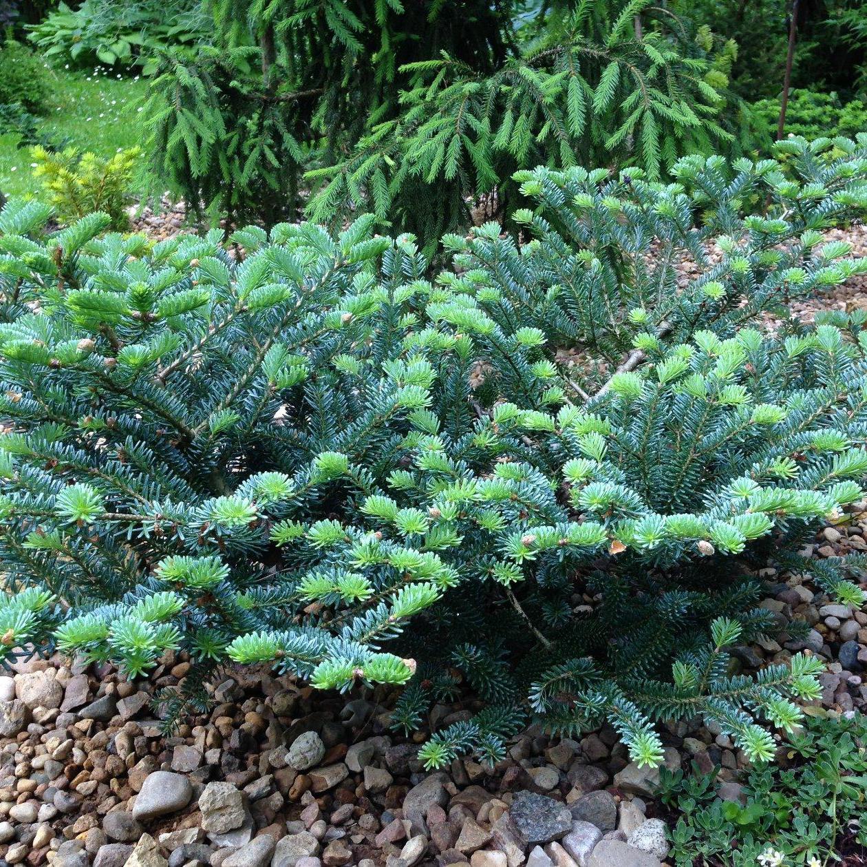 Пихта корейская Blue Emperor - вечнозеленое хвойное пихтовое дерево семейства сосновых. Этот сорт является медленнорастущим. Изначально молодые растения кустарниковой формы, с возрастом приобретают древовидную. Сорт отличается интересным подушкообразным габитусом и необычным окрасом хвоинок — ярко-зеленые, они имеют две пятнистые голубовато-сизоватые продольные полоски, благодаря чему растение кажется сизо-голубым. Хвоинки мягкие, короткие, растут, опоясывая побег. Шишки ягодообразные, покрыты прозрачными капельками смолы.