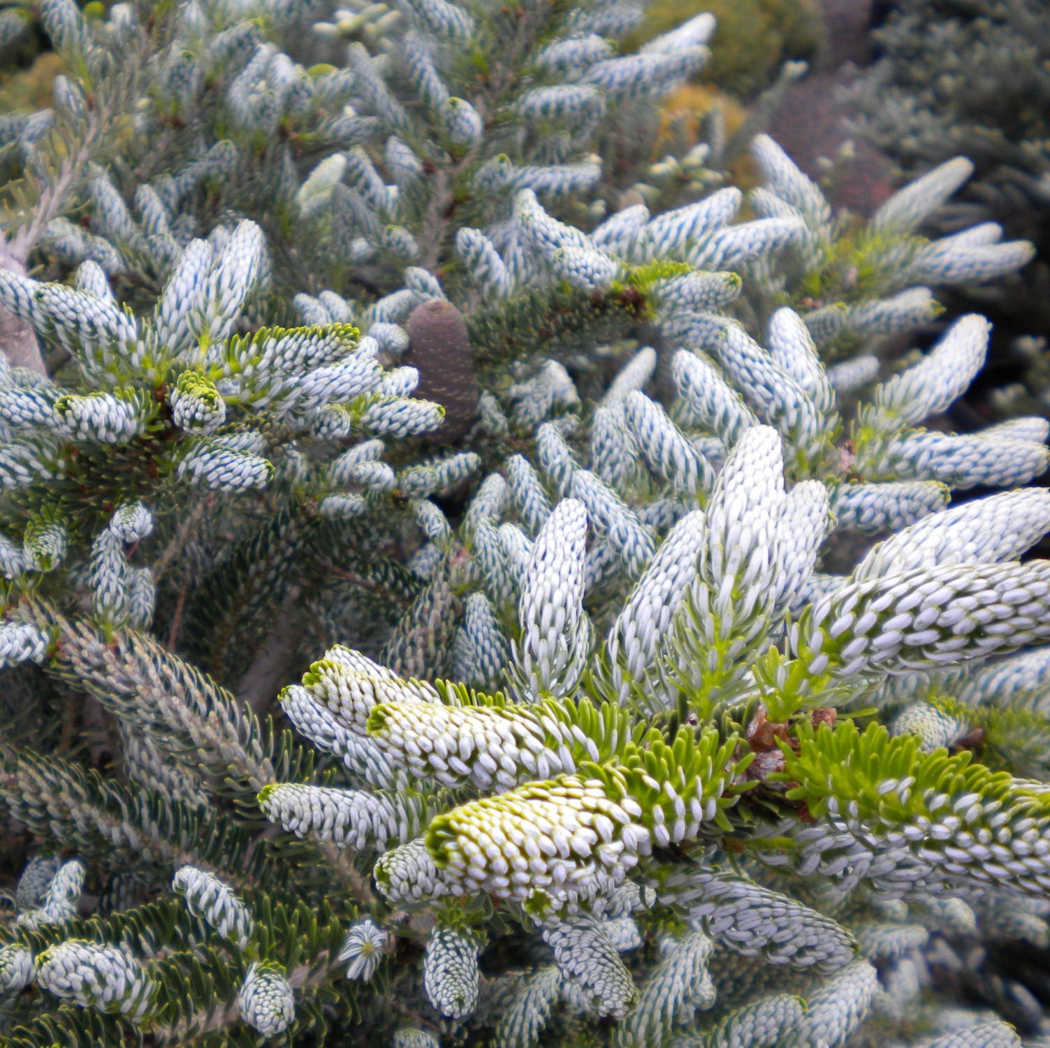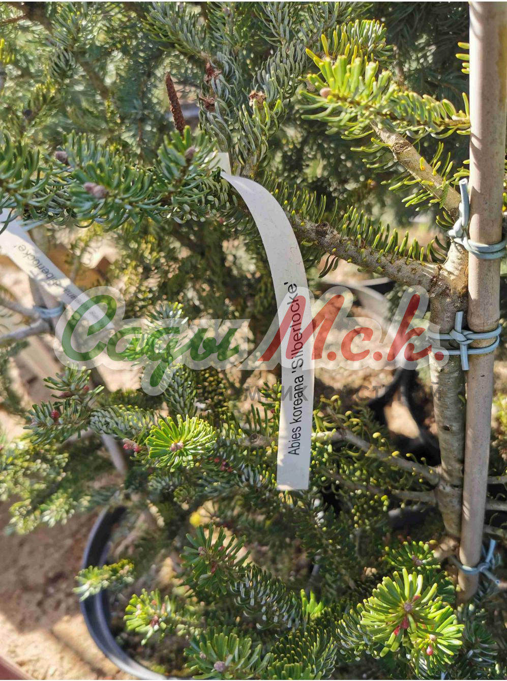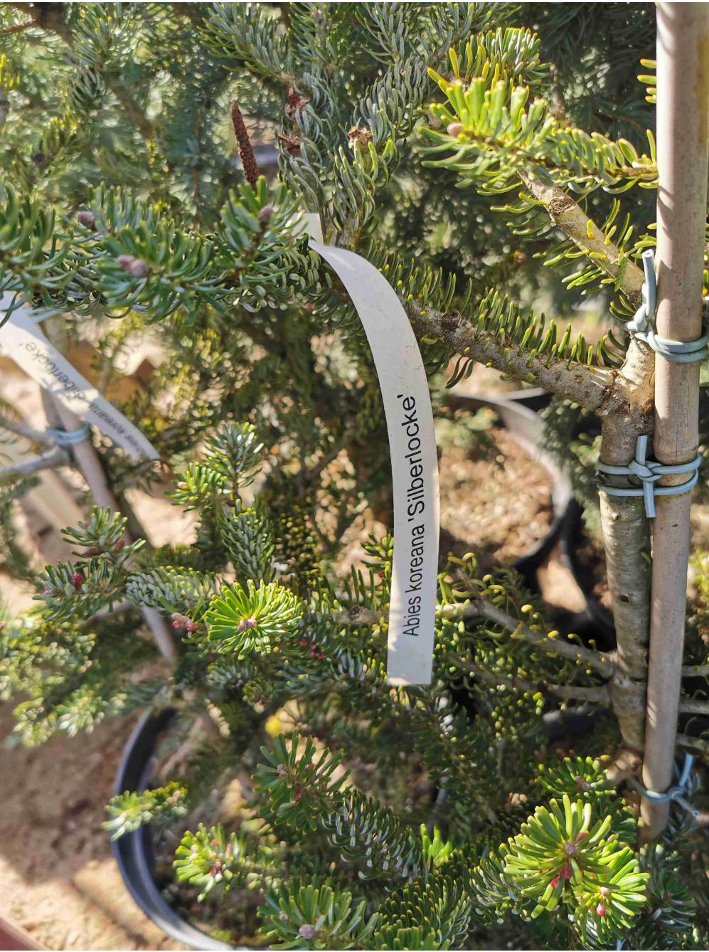 Пихта корейская Silberlocke - медленно растущее, ширококоническое дерево высотой до 10-15 м. Хвоя короткая, сильно изогнутая так, что видна нижняя белая сторона. Образует многочисленные фиолетово-синие шишки. Крона широкая, форма может быть разнообразной в зависимости от способа формирования, часто с несколькими вершинами. Многочисленные фиолетовые шишки, длиной до 7 см, прямостоячие, очень декоративные, часто с крупными каплями ароматной смолы, даже на молодых растениях. Особенность сорта - загнутые вверх хвоинки, которые открывают серебристо-белую изнанку, отчего все растение переливается.