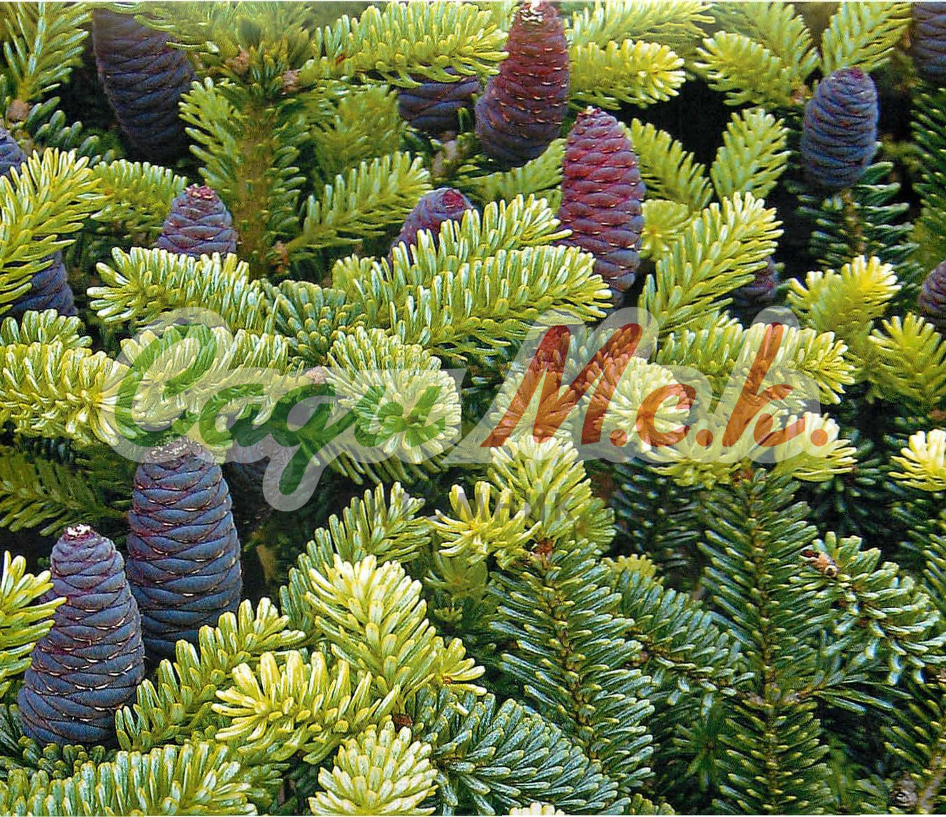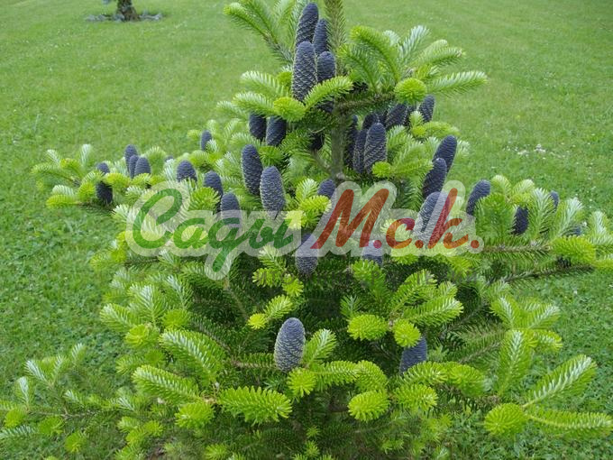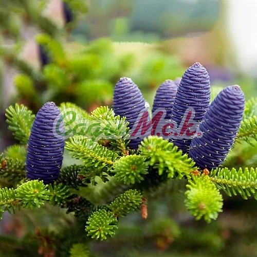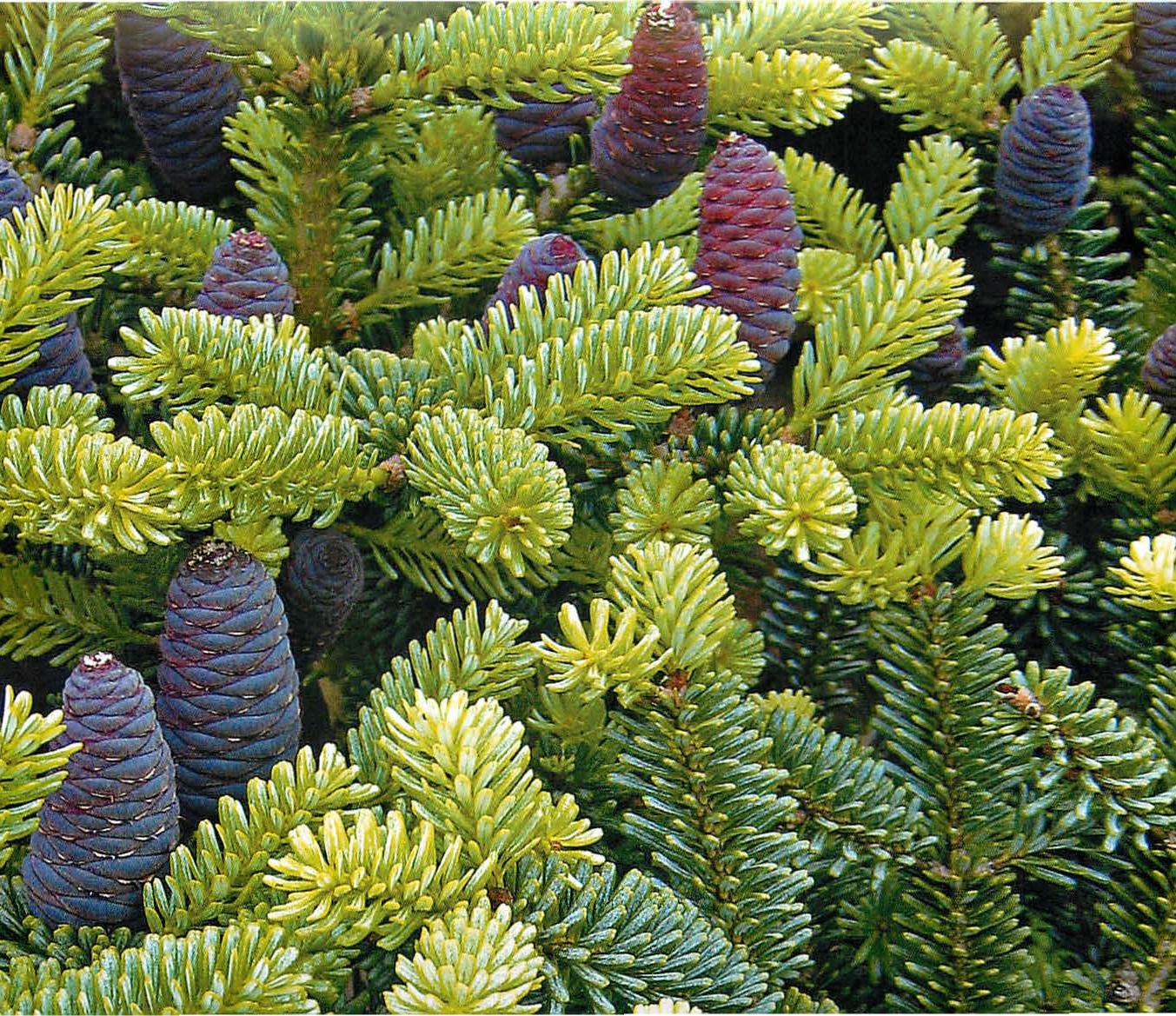 Плоды корейской пихты – шишки пурпурно-фиолетового цвета. Их длина около 4…8 см, диаметр – до 2 см. посажены на ветки вертикально на короткую ножку, концентрируются в верхней частями дерева и на молодых концах веток.