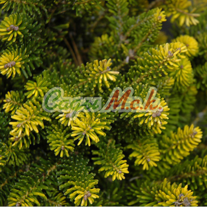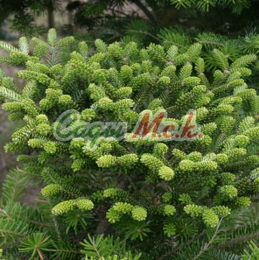 Вечнозеленое дерево. Хвоя корейского представителя Abies короткая – до 20 мм в длину и до 2,5 мм в ширину, слегка изогнута. Она густо заполняет ветки в виде настила. У молодых растений иголочки колючие и жесткие, у более рослых – с туповатым кончиком. Насыщенно яркая зеленая, у основания имеет 2 полосочки, характерные для рода.